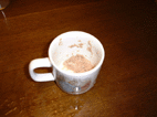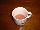 6.全部をコーヒーカップに入れて電子レンジで、チン!(なるべく穏やかに加熱して下さい。20秒ぐらいごとに取り出してよく混ぜるのですが、手荒には扱わないで。)