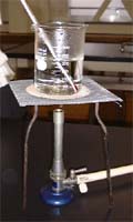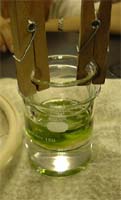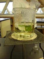 - ゆでた葉をエタノールの中に入れ、脱色する。工タノールは、60〜70℃の湯で湯煎する(fig.5)。