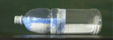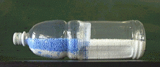 3.口から、径の異なる発泡スチロールのビーズを入れる(大−青、小−白)。