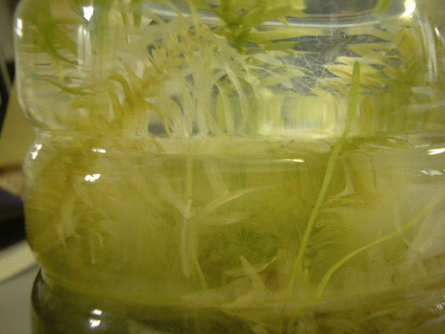 オオカナダモもだんだんやせ細ってはいますが、成長しています。ミジンコ達も元気です。心配していたアオミドロもそれほど増えすぎていません。